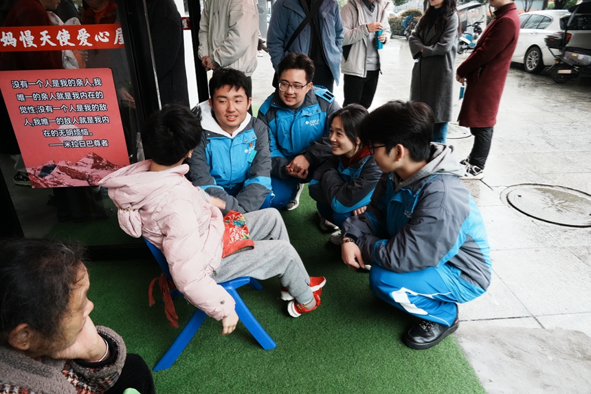 阳春三月,草木新生,万物向阳生长。作为雷锋家乡的一员,传承雷锋精神、传递人间温情,是每一位附中人的责任与坚守。温润春风中,雷锋精神如甘霖般浸润人心,我校“蓝精灵”志愿服务队怀揣赤诚与热忱,继续走进万家丽北路湘雅博爱医院附近的姚妈妈爱心屋,用陪伴与关爱,温暖着一群特殊的“慢天使”。