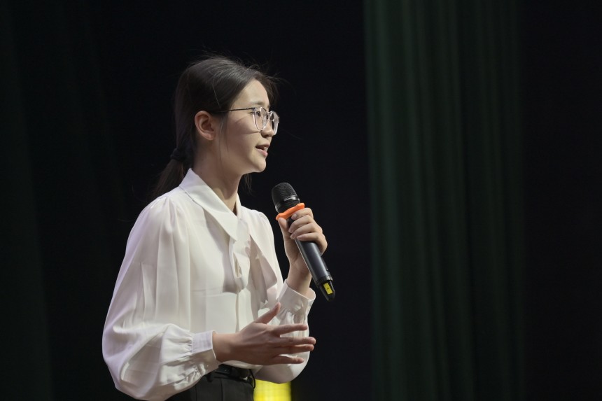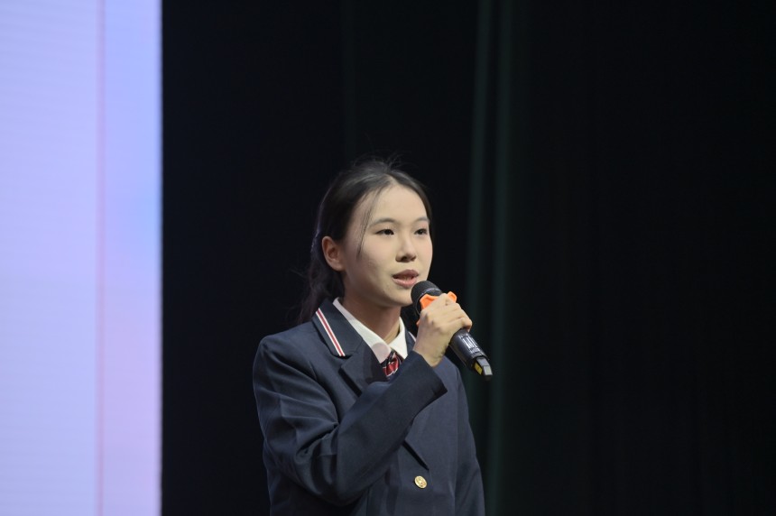 大泽湖校区高2504王心怡将崇高理想转化为实际行动,用演讲带领附中学子以先辈为镜,汲取力量,砥砺品格,努力成长为可堪大任、能担重任的时代新人。