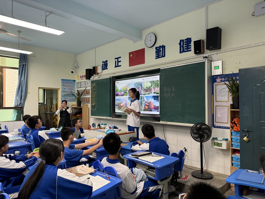 随后,大家根据安排有条不紊地进入各个班级进行宣讲。学校介绍、历史沿革、学科竞赛、校园特色无一不吸引着学弟学妹们。在中考之际,学长团的同学们向学弟学妹分享自己的中考经验,播放校友加油视频,祝愿所有学弟学妹都能收获好成绩,中考必胜。