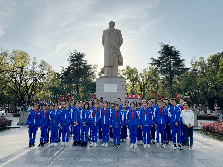 3月28日下午,大队辅导员张冰洁、青年教师代表金刘博文带领团员代表、队员代表徒步前往岳麓山,进行湖南师大附中庆祝建校119周年暨“慎终追远 缅怀先烈”主题活动。