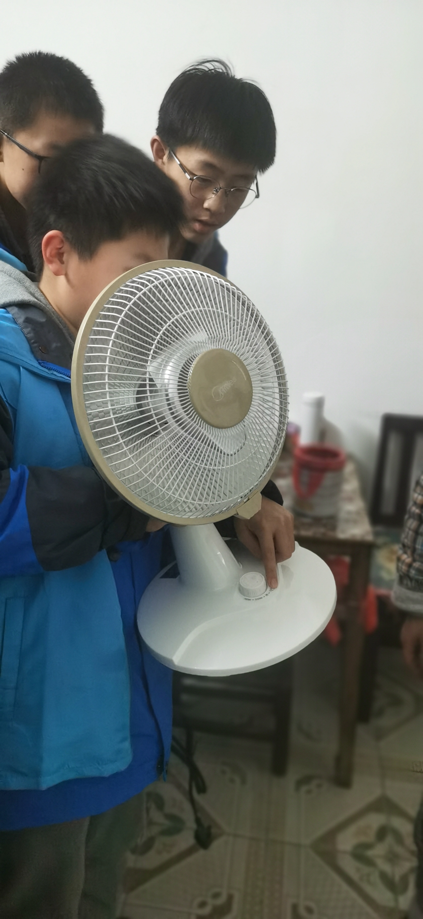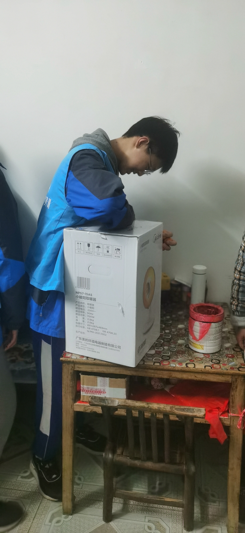 在樊嗲嗲家里,考虑到嗲嗲年近80岁且近期腿受伤,“蓝精灵”将空调暂时放至角落,尽量不影响嗲嗲和娭毑们的近期生活,同时在现场跟安装人员确认要尽快上门安装。在聊天过程中,周同学了解到嗲嗲年轻的时候喜欢打篮球,还邀请嗲嗲腿恢复后,到附中来观看大家打篮球。