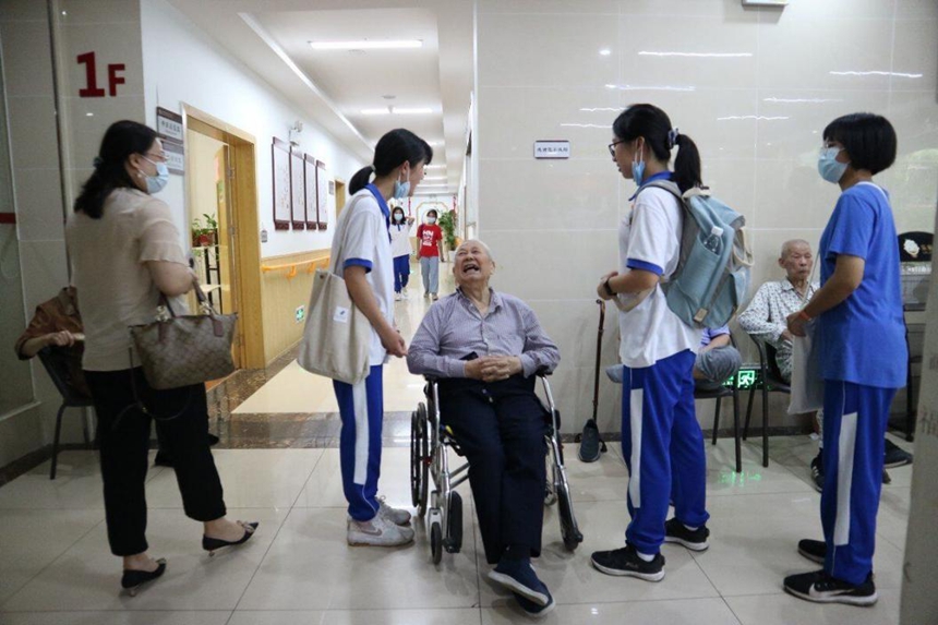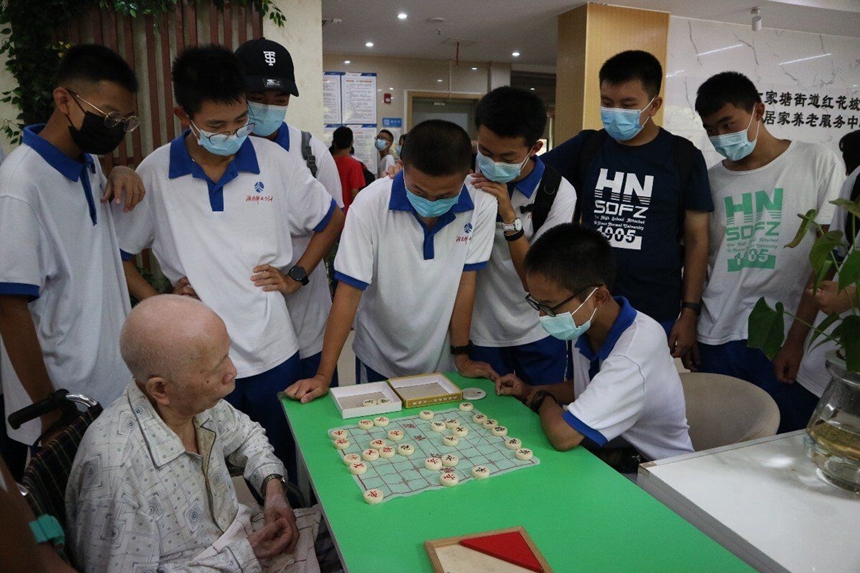 近期,还有很多班级也自发地前往社区居家养老服务中心开展各种活动,如下象棋、用轮椅带老人散步、陪老人们说笑解闷,有的还帮助养老中心的工作人员运送货物,新时代的青年们与新中国最初的一代青年们打成一片。在与他们的深入交流中,同学们了解到了这群老人们当年是如何为新生的新中国挥洒青春,造福社会的故事,以及目前物质与精神方面的困难,也更加坚定了做一个品学兼优,心怀天下,不负韶华的社会主义新时代的优秀青年。