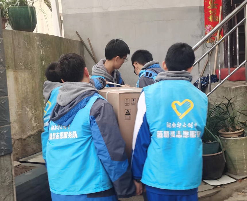 居委会通过前期走访征集老人的“愿望清单”,了解到茶山村的欧阳嗲嗲因家住一楼常年潮湿且本人身患风湿想要一台取暖器方便取暖;樊嗲嗲家里的空调“罢工”已久,想在长沙的冬天来临之前添置一台空调。“蓝精灵”志愿者们用爱心义卖所筹集的款项,带上嗲嗲们所需要的取暖器和空调等物资,一一送到家里。