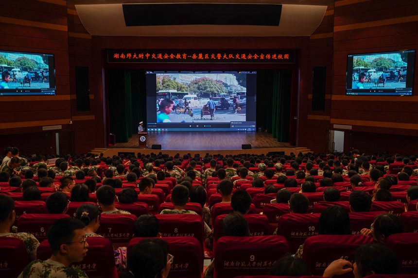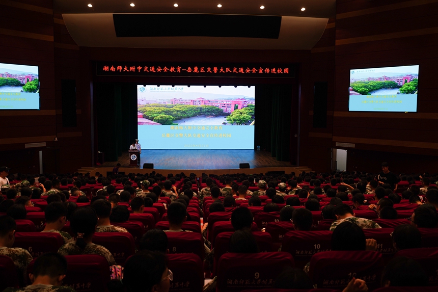 8月21日下午,为进一步加强学生交通安全意识,培养学生文明出行的交通习惯,预防和减少交通事故发生,岳麓区交警大队开展“交通安全宣讲进校园”活动,为高一新生开展交通安全知识讲座。