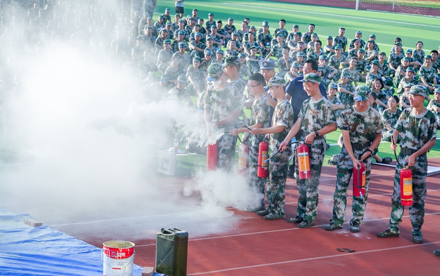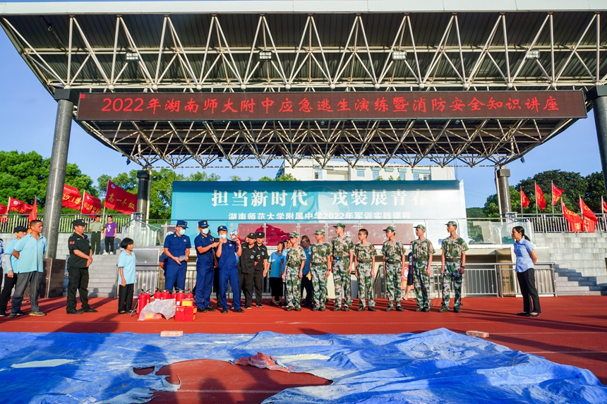 8月21日早上,学校在学校组织开展安全应急疏散和灭火实战演练,来自2022级高一新生和德育与学生发展处、后勤与保卫处的全体工作人员1400余人参加了演练。党委委员廖强出席演练活动。德育与学生发展处副主任陆稳主持演练活动。