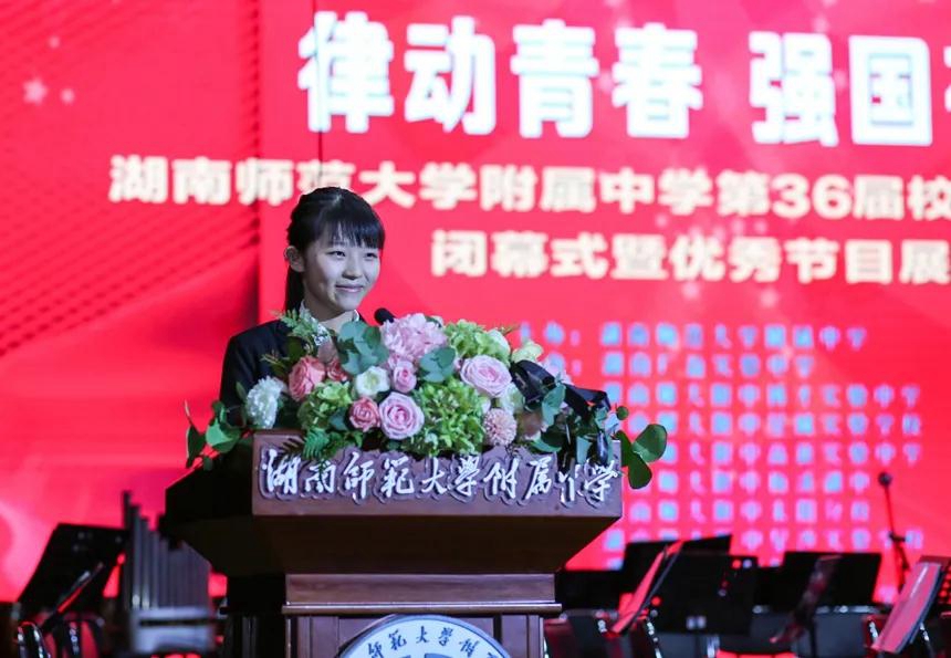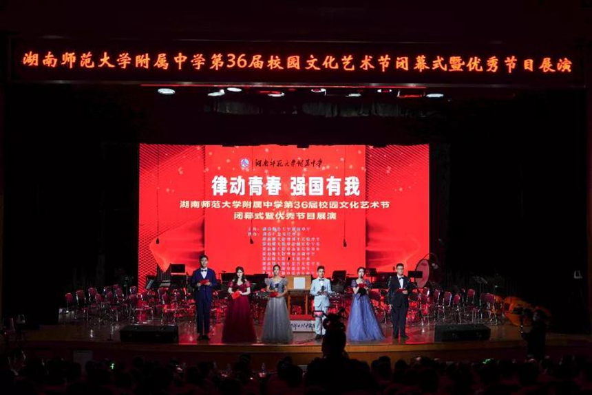 湖南师大附中校长谢永红,党委书记黄月初,副校长陈迪勋,纪检书记李春莲,副校长苏建祥,法治副校长、岳麓区公安局政委刘志敏,校家长委员会主任佘剑波出席闭幕式。湖南师大附中教育集团成员校领导及友好学校领导、老师,集团校及友好学校近1000位优秀学子参加闭幕式。闭幕式由团委书记兼德育与学生发展处副主任李钊主持。