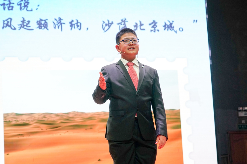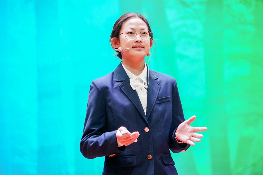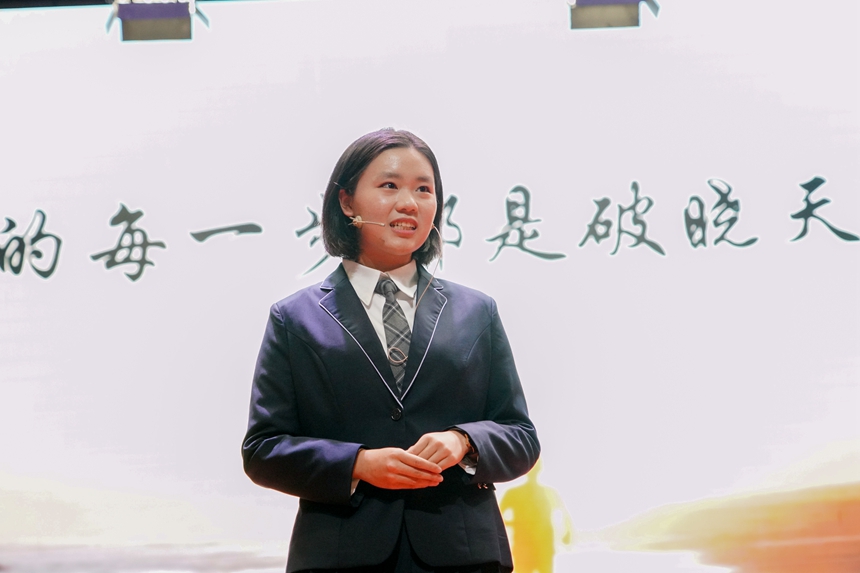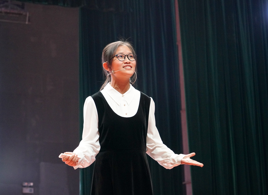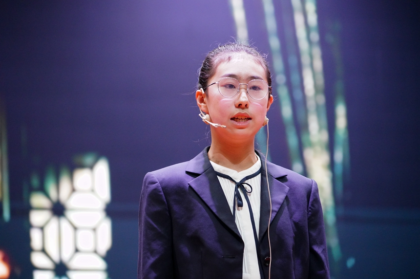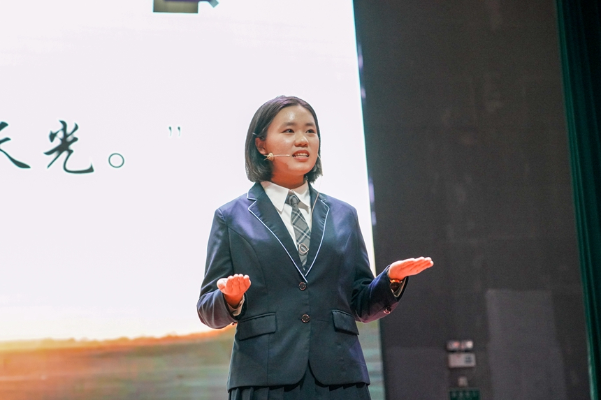 比赛开场,15位选手带来由白帆文学社原创诗朗诵《勿忘,不忘》,献给84年前在南京大屠杀中逝去的灵魂。15名选手分为高中组和初中组,紧密结合“青春向党·奋斗强国”主题,描绘着青春的各种模样:五四青年们在沉默中高歌爱国、在暗夜里造炬成阳;从南湖开天辟地的一条红船到建党百年无数仁人志士的浴血奋斗;万千青年医者志愿者的毅然逆行;三尺讲台上的桃李芬芳;午后教室里奋笔疾书的身影;雷神山火神山工地里的挥汗如雨……爱国、爱党、爱社会主义等主旋律从选手们满怀真情的讲述中不断涌现,深深感染了在场的每一个人,赢得阵阵掌声。