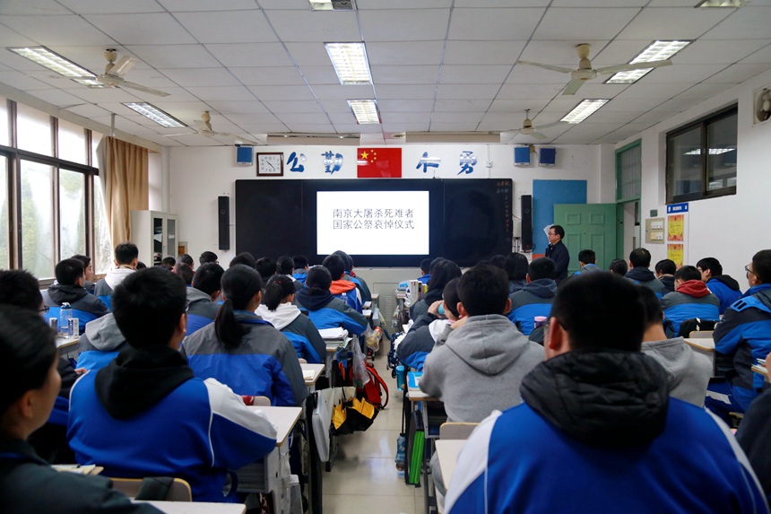 12月13日是南京大屠杀死难者国家公祭日,我校隆重举行南京大屠杀死难者悼念活动。