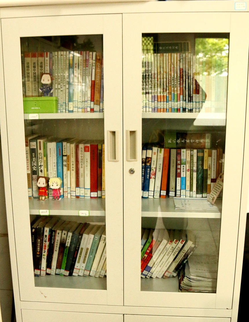走进每个班级,看到的图书角都令人眼前一亮。无论是教室前或教室后的摆放位置、铁质的封闭式书柜或木制的开放式书架,都经过了同学们的精心挑选;各种亲手制作的剪贴画、纸人模型等小装饰物让班级图书角增添一份生动活泼;而全班同学、甚至老师和家长们都参与到了图书角的布置中,书柜和书架都是整齐有序、一丝不乱。
