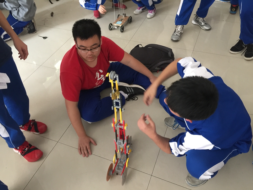 此次竞赛活动邀请了高一年级组长贺仁亮老师,物理教研组彭知文、邓放明、马顺存、王超老师担任评委,参赛班级班主任到现场指导,100余名同学到现场观摩。17个班级代表队参加角逐,各代表队共同设计、制作重力车并操作重力车比赛,整个比赛过程精彩纷呈。 最后,根据参赛车辆的高度、砝码重量、设计理念、制作工艺以及车辆移动的距离等评价指标,评委们做出综合评价,评选出一、二、三等奖。1613班、1609班、1616班、1611班荣获一等奖,1612班、1615班、1604班、1618班、1614班、1603班、1617班、1610班荣获二等奖,1606班、1601班、1607班、1602班、1619班荣获三等奖。