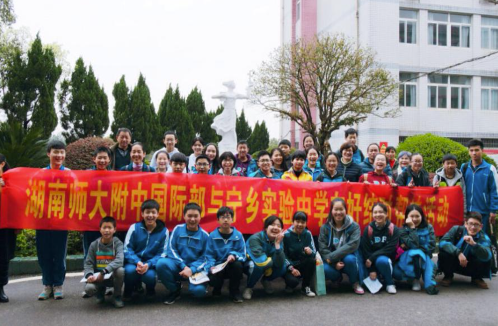到达目的地后,湖南师大附中国际部与宁乡第一实验中学举行了简单而温暖的友好帮扶结对仪式。双方的学生代表,老师和家长分别发表讲话。全班同学分为7组,每组帮扶一个帮扶对象。此过程中1622班的每个同学把自己写的信和精心准备的礼物送到了帮扶对象手中。