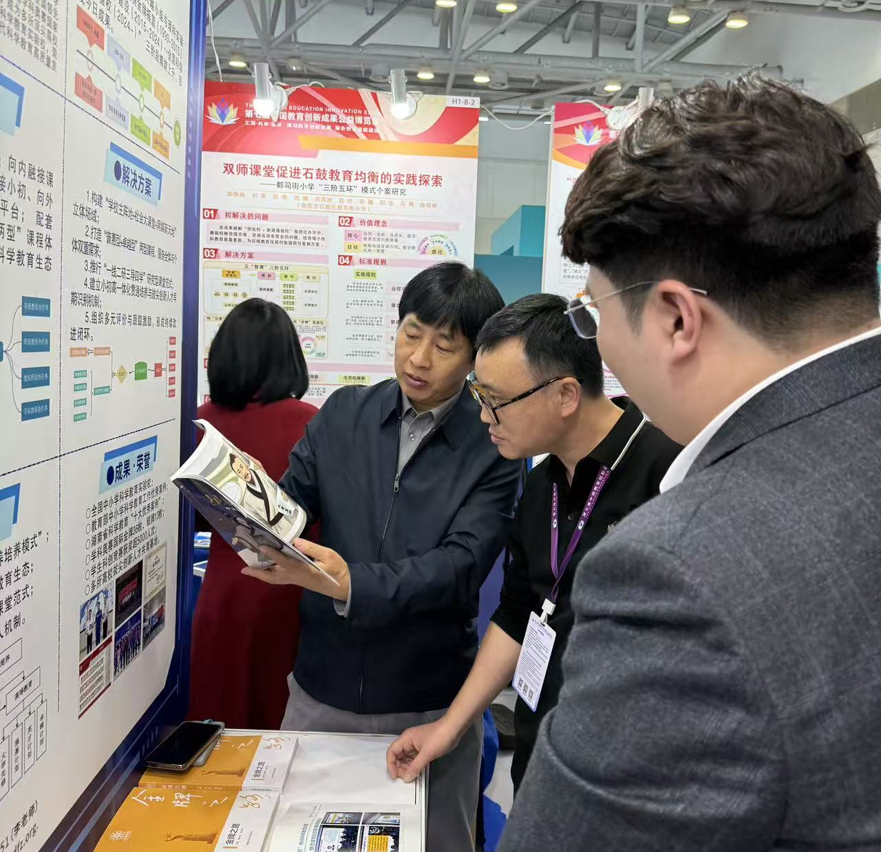 参展教师化身“成果代言人”,热情接待前来咨询的教育同仁,他们手持精心制作的成果手册,面带微笑地引导参观者驻足展台,细致讲解成果的设计思路、实施过程与应用成效。现场不时响起掌声与赞叹声,赢得广泛关注与一致好评。