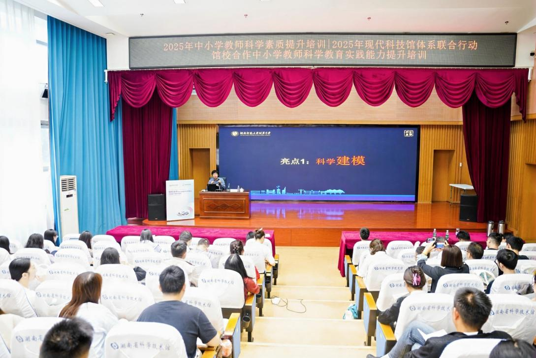9月24日,由中国科技馆主办的2025年馆校合作科学教师培训在湖南省科学技术馆隆重举行。来自湖南、广东、广西三省的中小学科学教师及科技馆辅导员共100余人齐聚一堂,共同探讨科技馆资源与科学教育的深度融合。我校特级教师李湘黔应邀作专题报告,其前沿观点与实践经验引发线上线下热烈讨论。