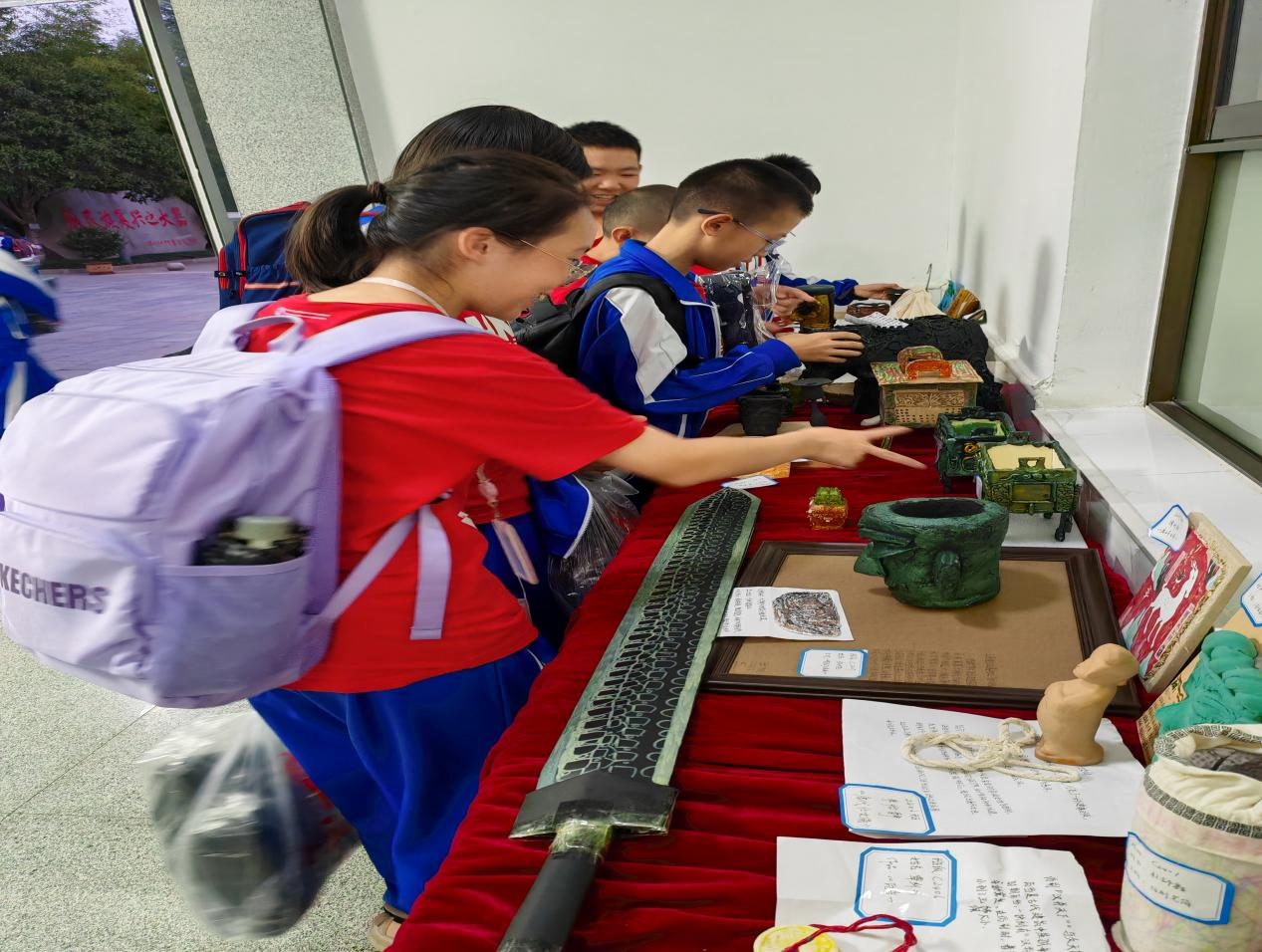 巧手仿文物,匠心通古今。我校七年级学生利用国庆假期通过巧手匠心,任选七年级教材中一件出现过的文物进行仿制,仿制的材料类型多样且环保,比如纸板、竹片、陶泥、木棍、超轻粘土、树枝、泡沫、塑料等,仿制出造型各异的青铜器、石器、兵器、玉器等,并于10月10日开展七年级历史文物与科技展览活动。文物无声,但文明有声。让我们一起走进其中,探索文物科技,追追根溯源吧!