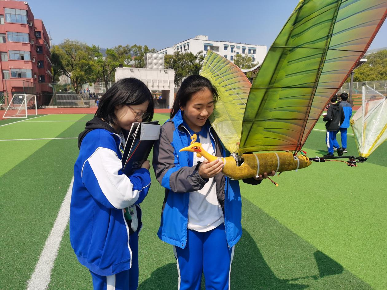 3月28日,我校在第37届校园科技节期间举办了仿鹰扑翼飞行侦查机器人展演活动。哈尔滨工业大学(深圳校区)的展演团队携自研的仿鹰扑翼飞行侦查机器人在我校田径场进行了展演和体验,我校高一年级全体学生参与。