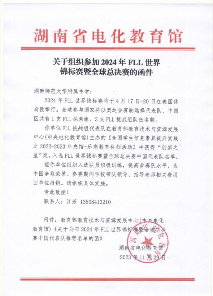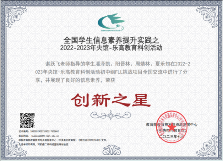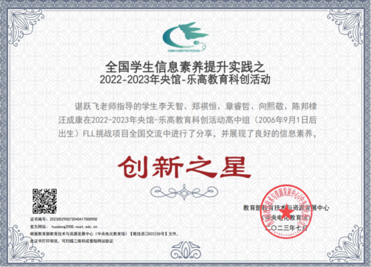 1.李天智(2217班)、郑祺恒(2218班)入选FLL世界锦标赛暨全球总决赛中国代表队。