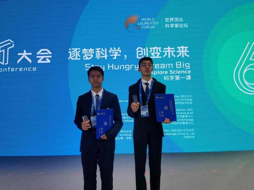林靖罡(高2117班)、李玥森(高2202班)同学通过科创项目答辩、面试等层层遴选,光荣入选世界顶尖科学家科学T大会优秀科学青少年代表,参加了本届大会。会上,从全国选拔的百位“科学青少年”与20多位世界顶尖科学奖项得主(含诺贝尔奖获得者)、中国两院院士、海内外资深科学家面对面交流。(两位同学论坛交流作品分别为《基于Arduino 的自动虹吸地铁防洪系统》《防止试管爆裂的创新研究》,两作品都为中国“互联网+”大学生创新创业大赛优秀作品)
