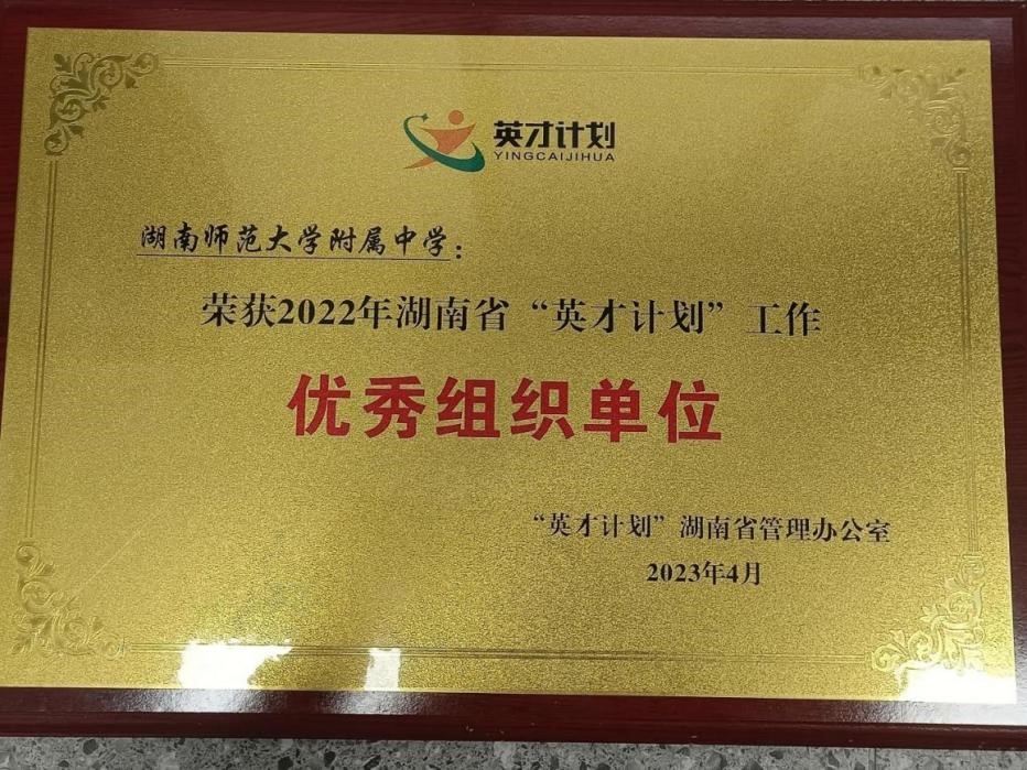 我校积极探索建立高校与中学联合发现和培养青少年科技创新人才的有效模式,为青少年科技创新人才不断涌现和成长营造良好的社会氛围。我校是湖南省首批开展 “英才计划”培养活动的学校。2018年以来,我校“英才计划”培养活动卓有成效,2020年入选全国“英才计划”中学培养基地,湖南省唯一。2022年度我校荣获湖南省“英才计划”工作优秀组织单位。