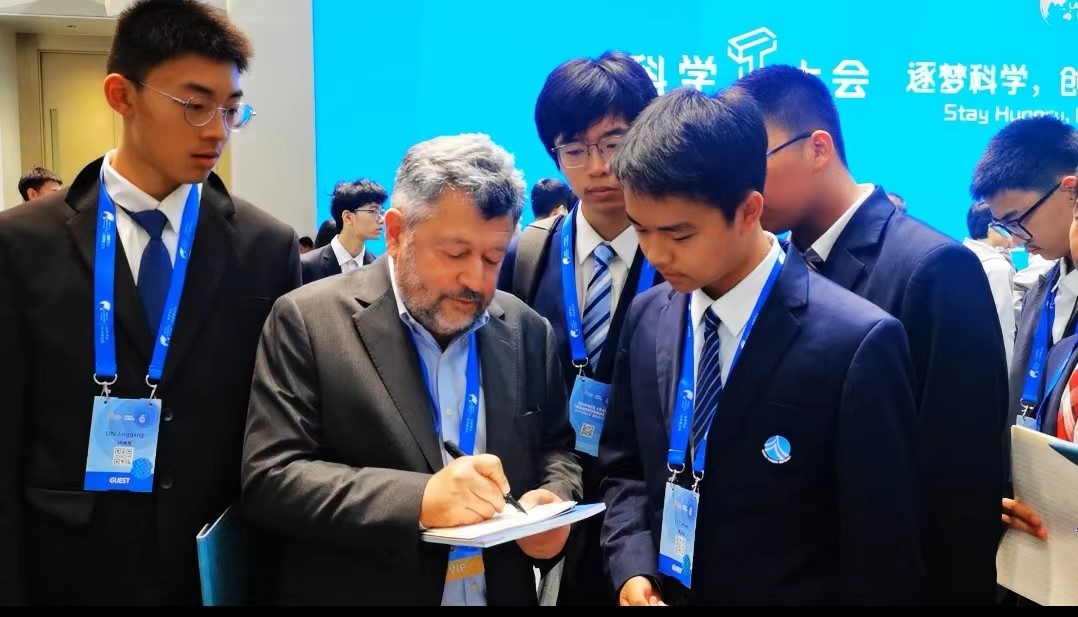 11月5日,2023年世界顶尖科学家科学T大会在上海举行。我校高三林靖罡同学、高二李玥森同学入选世界顶尖科学家科学T大会优秀科学青少年代表,参加了本届大会。 会上,从全国选拔的百位“科学青少年”与20多位世界顶尖科学奖项得主(含诺贝尔奖获得者)、中国两院院士、海内外资深科学家面对面交流。