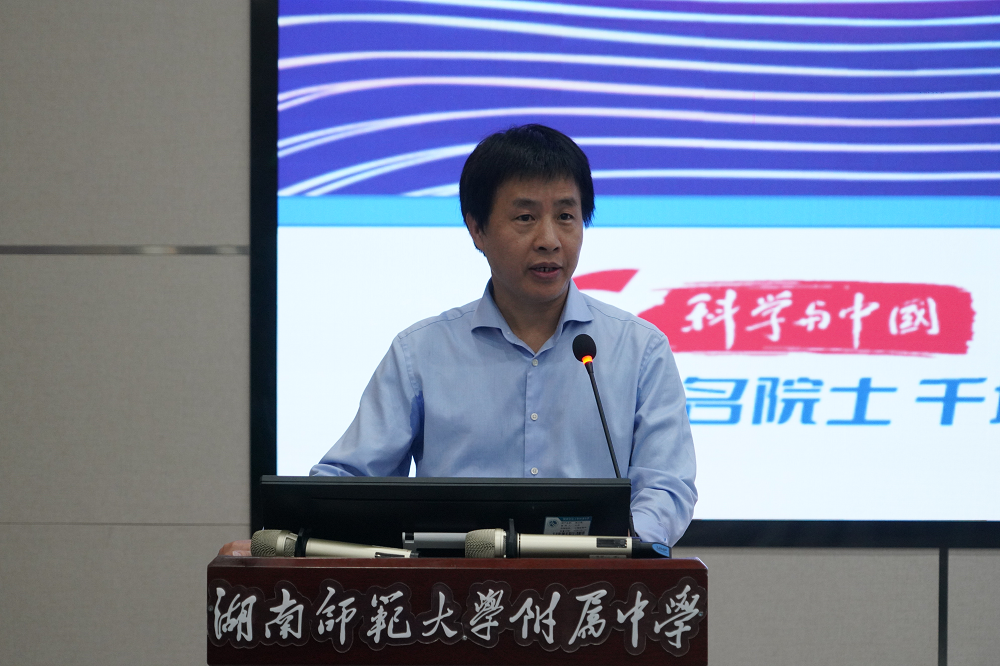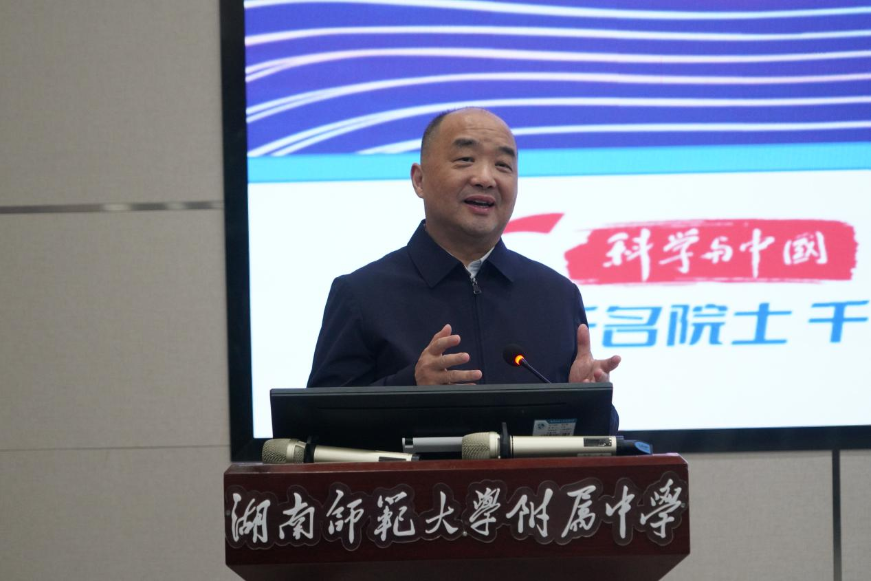 10月30日,我校开展惟一大讲坛第143期暨院士进校园活动,中国科学院院士、国防科技大学教授王怀民给师生作题为《科技创新的源泉》主题讲座。讲座采用“线下+线上”的模式,听众超44万。省科协青少年科技中心主任钟飞彪,湖南师大附中校长谢永红,科技创新中⼼主任黄宇鸿出席,活动由科技创新中心副主任李湘黔主持。
