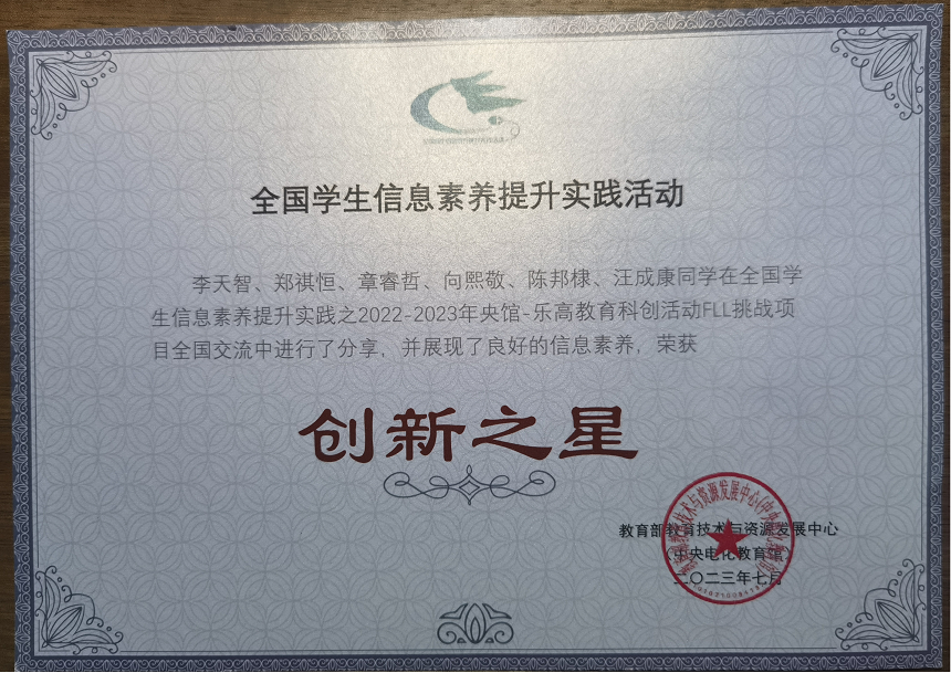 2022级高中组李天智、郑祺恒、章睿哲、向熙敬、陈邦棣,项目:FLL挑战;