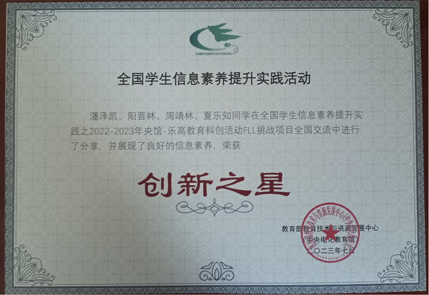 我校共派出FLL挑战初、高中组队伍各一支、智能机器人C类无人机高中组队伍一支总共三支队伍参加此次活动,其中FLL挑战初、高中组队分别获得此项目的创新之星。