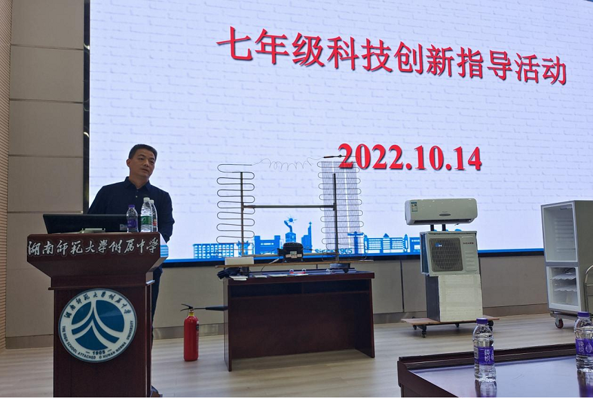 苏校长作活动开场致辞。苏校长一直关注与支持学校素质教育的推进,关心学生科学核心素养的培养与提升。首先,苏校长向支持我校科技创新指导活动的熊教授致以衷心感谢,同时指出此次活动是集人才培养、科技创新、科普教育于一体的活动。科学技术改变世界,改变生活,苏校长强调湖南师大附中历来重视科技创新,科技创新要从早从小抓起,力求开好头,起好步。最后苏校长表达了对七年级全体学生的殷切希望,希望七年级所有学生能在此次活动中学有所获、学有所成。