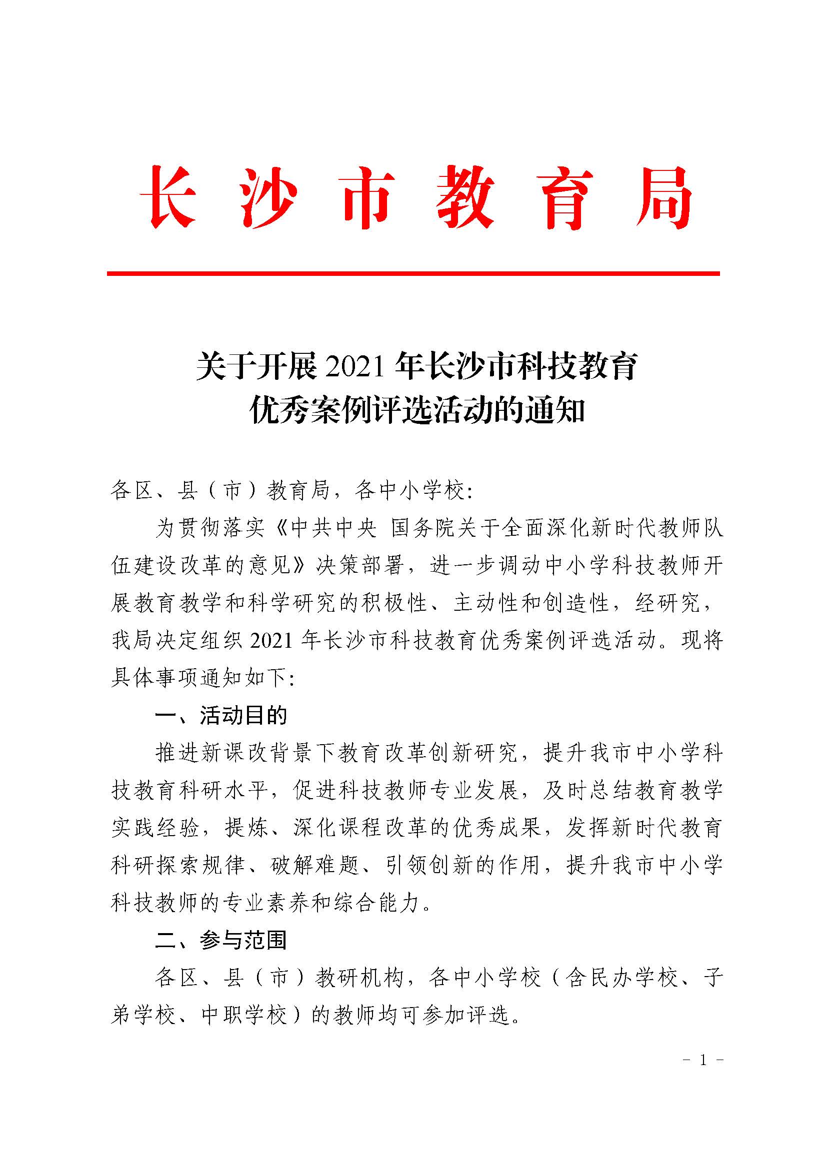 关于开展2021年长沙市科技教育优秀案例评选活动的通知
