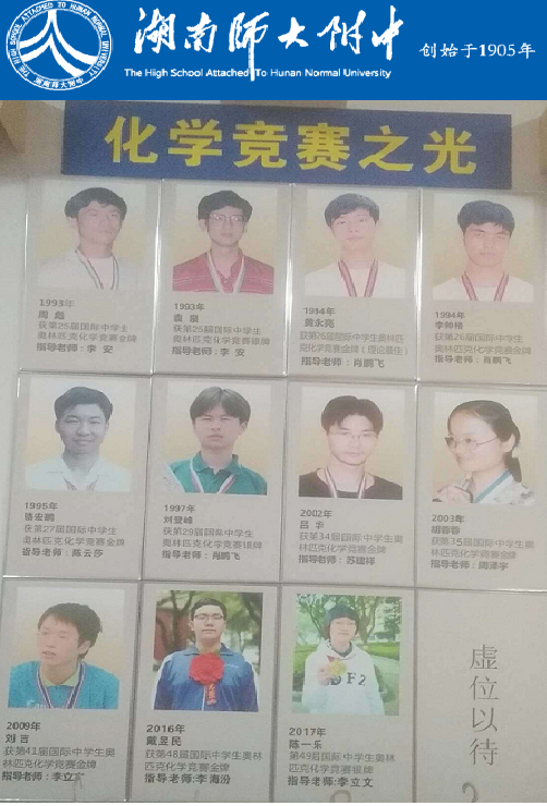 根据《中国化学会青年化学奖条例》,经中国化学会奖励工作委员会决议,授予北京大学化学与分子工程学院特聘研究员、我校校友吕华(34届国际中学生奥林匹克化学竞赛金牌获得者,保送北京大学,指导教师苏建祥),厦门大学化学化学化工学院教授、我校校友徐海超(全国中学生奥林匹克化学竞赛一等奖获得者,保送厦门大学,指导教师苏建祥)等10名优秀青年化学科技工作者2017年度“中国化学会青年化学奖”。