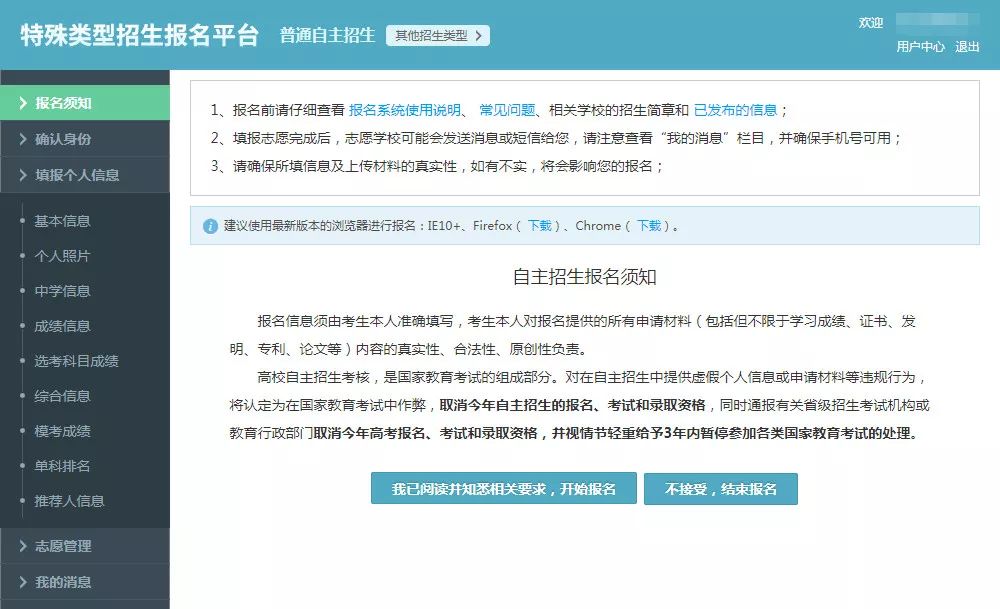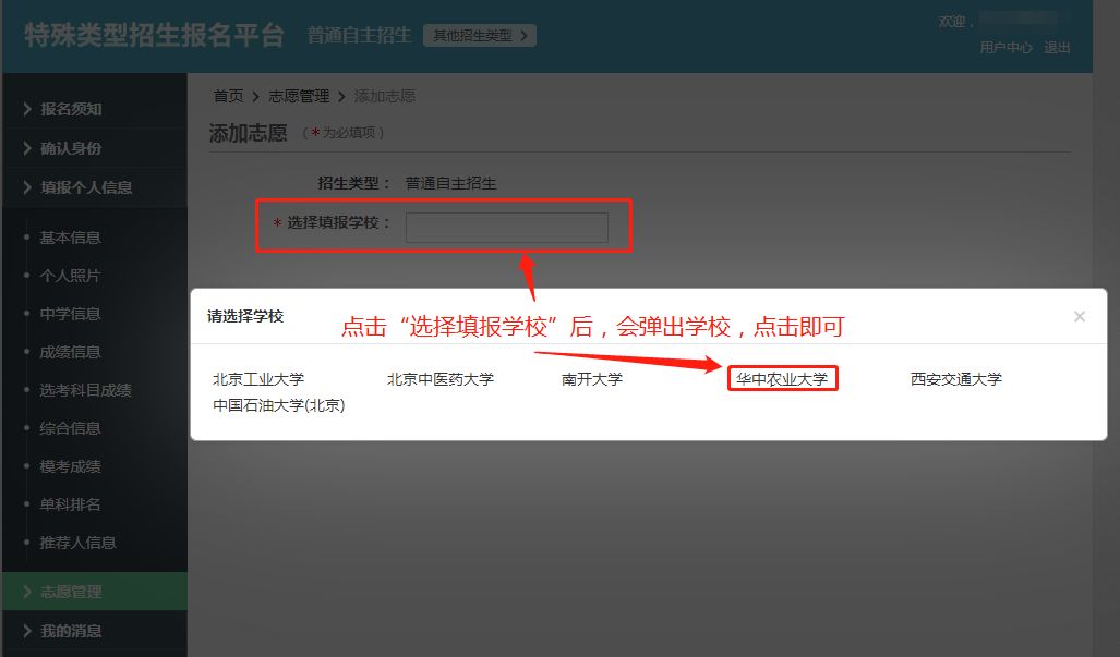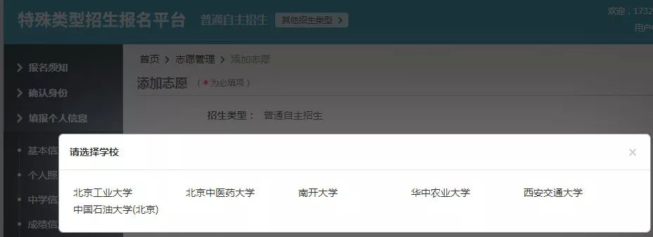 登录进自主招生报名系统后,考生需要选择普通自主招生项目。