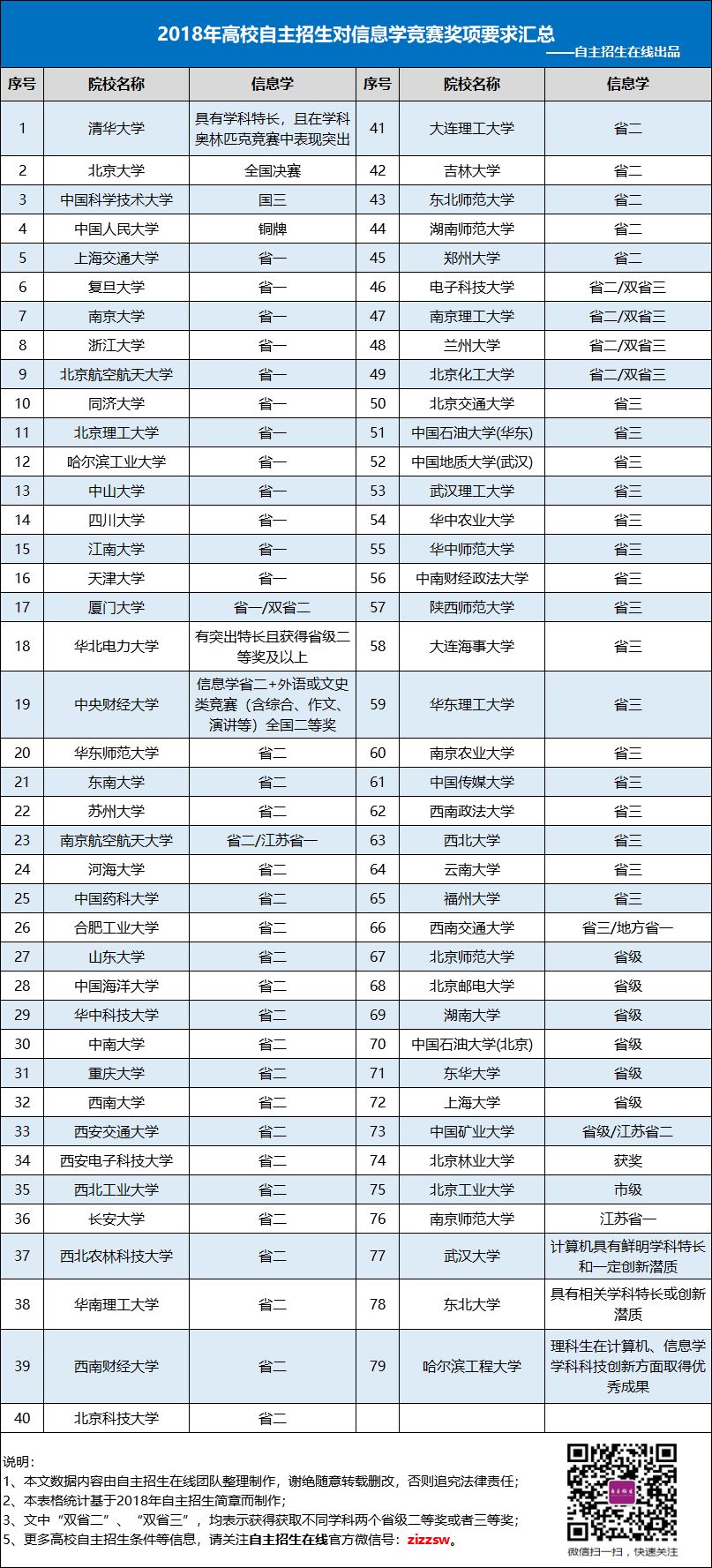 高中信息学竞赛获奖分别可以报考哪些高校自主招生?可选专业有哪些?
