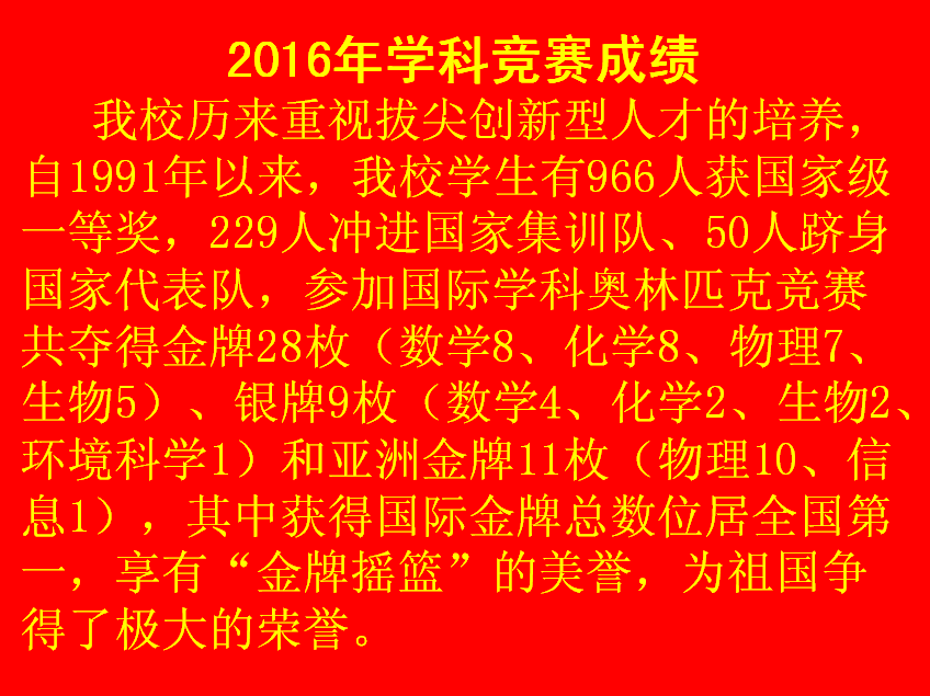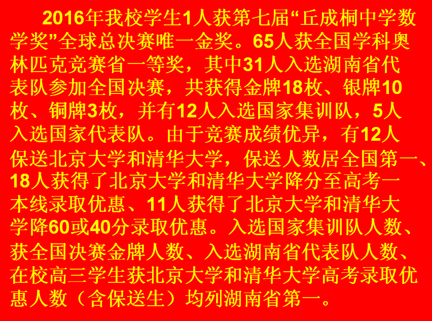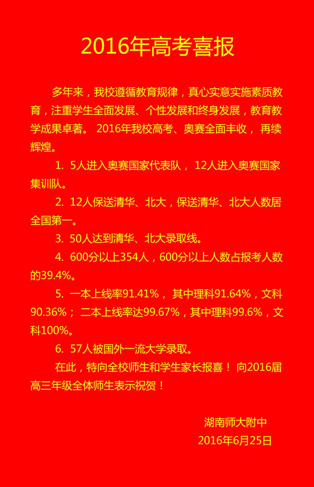 湖南师大附中2016年高考喜报和学科竞赛成绩