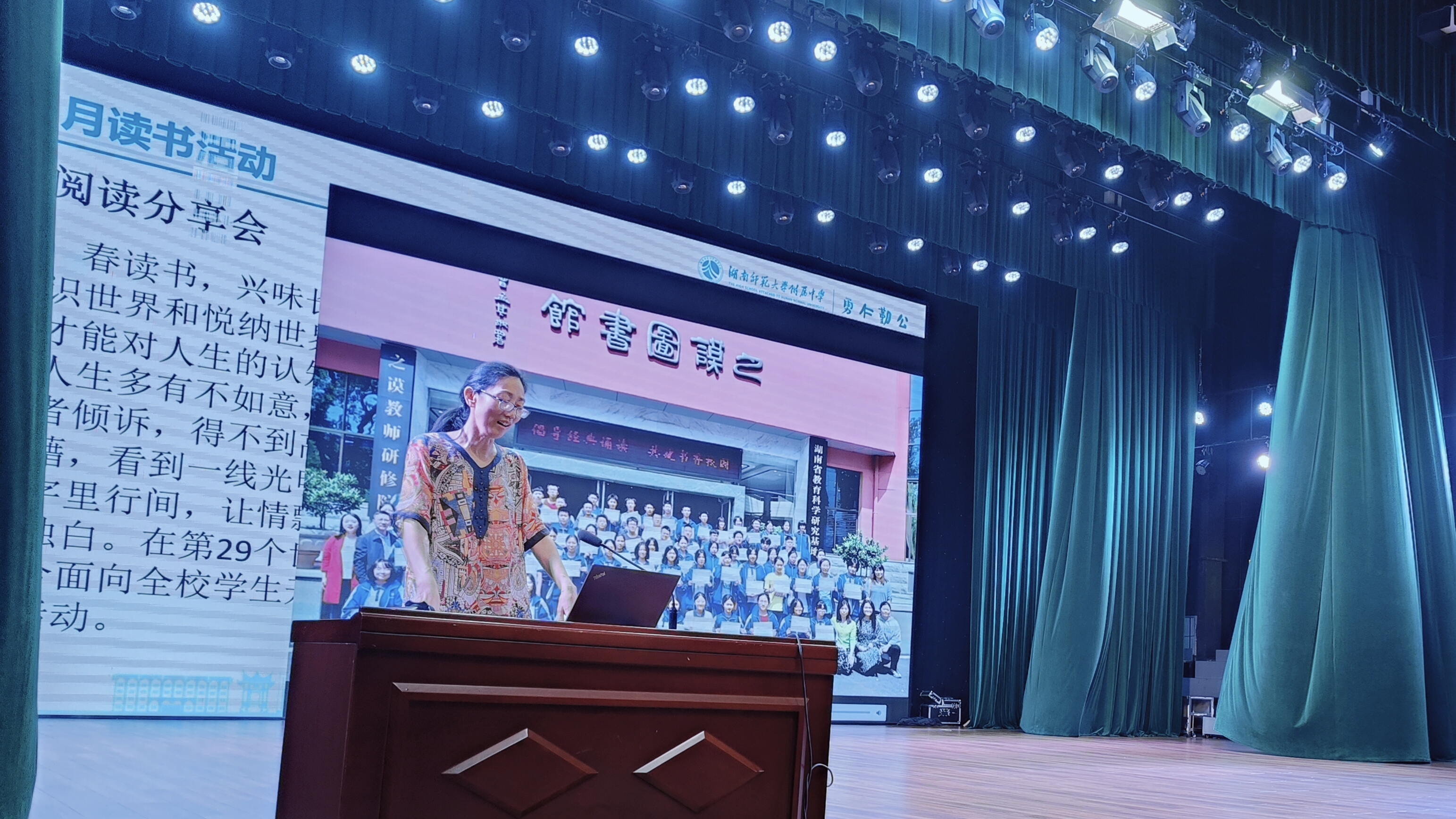 读书月系列活动之“名家领读”:2025年4月15日,学校承办长沙市中小学生读书行动“名家领读”第二期活动。本次活动特邀中南大学人文学院杨雨教授与物理学院阳军亮教授进行主题为“人人皆怀‘诗心’,事事总堪‘物语’”的跨学科对谈,为在场1000多师生带来一场思想盛宴。