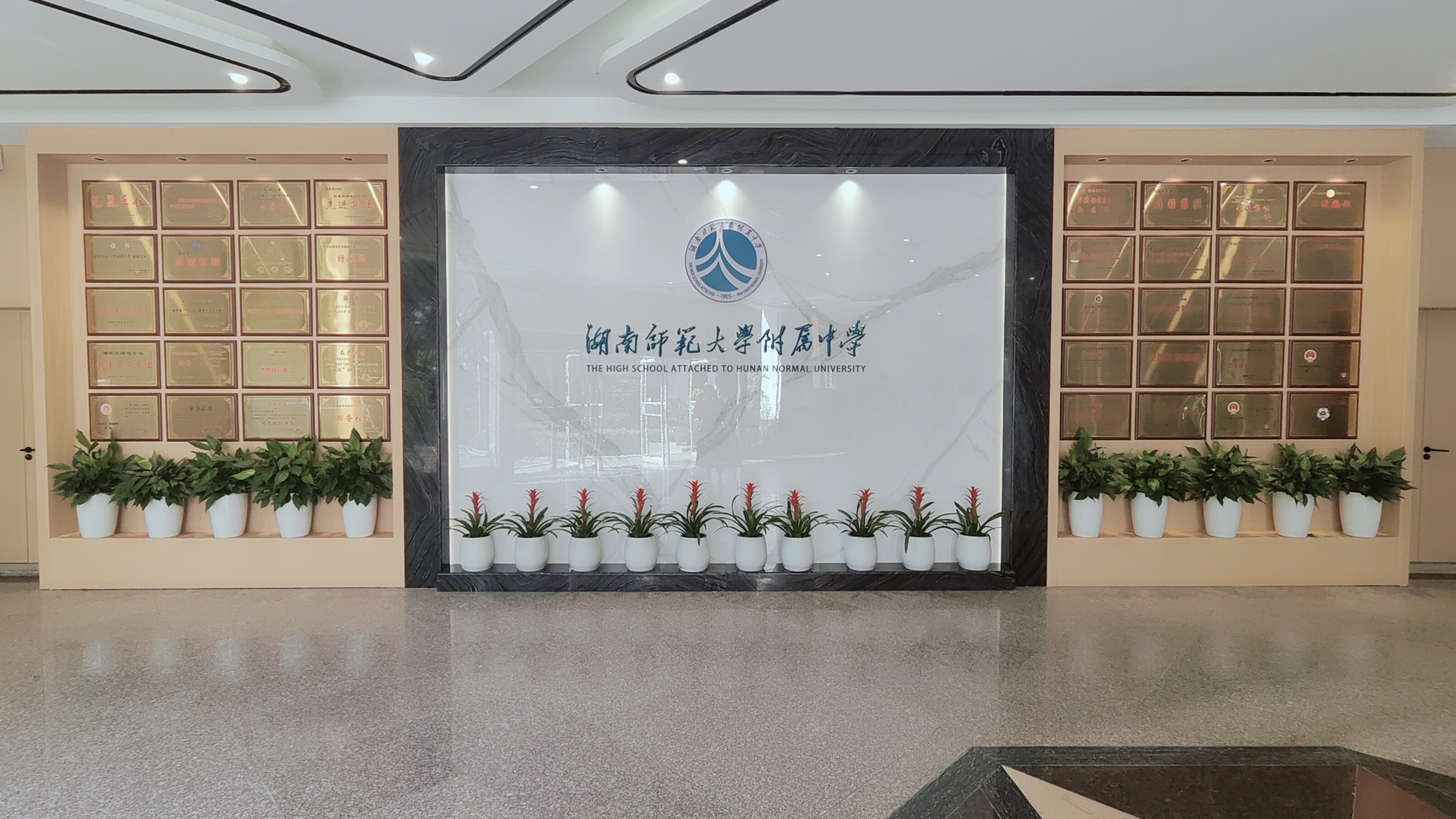 荣誉墙建设:图书馆大厅新增的校庆荣誉墙成为展示校园文化的重要窗口。设计团队精心规划展示内容,中央位置突出学校标志,两侧对称陈列历年来获得的重要荣誉证书。特别采用的顶光照明设计,使整个荣誉墙在夜间也能保持明亮大气的视觉效果,成为图书馆内一道亮丽的风景线。荣誉墙的建立,既是对学校发展历程的回顾,也是对师生继续前行的激励。
