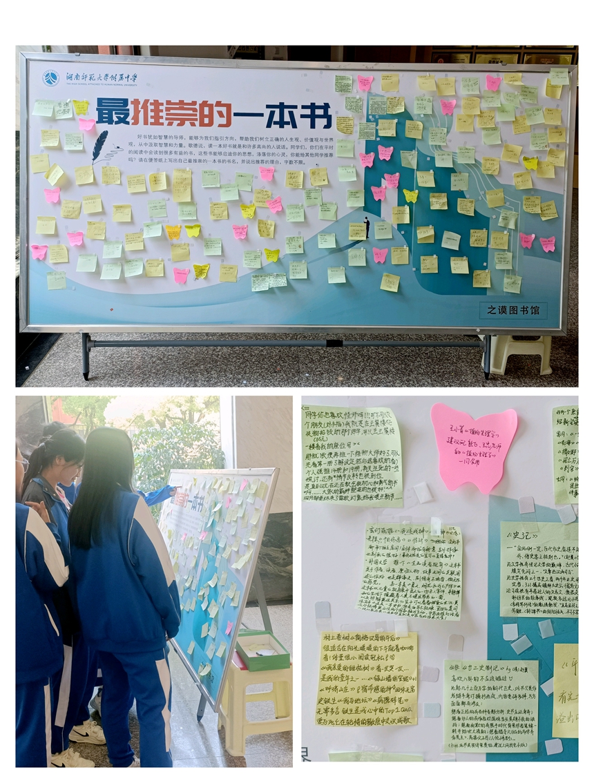 好书共享,传递书香。4月起,之谟图书馆设置“最推崇的一本书”互动展板,师生通过便签贴推荐书籍并分享理由,搭建起一座以书会友的桥梁,推动阅读文化的传播。