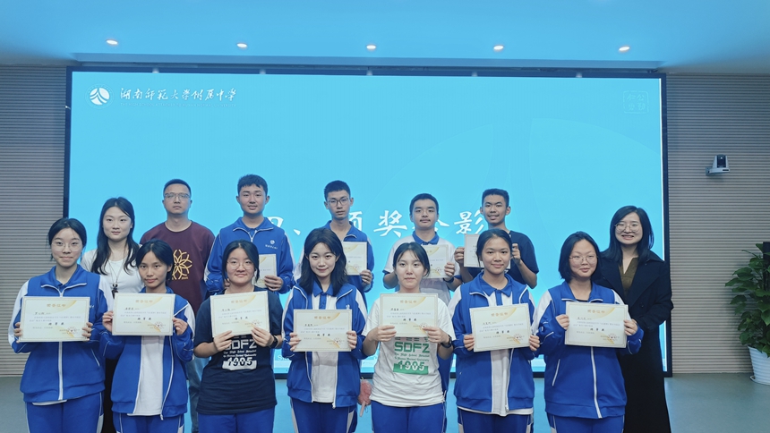 4月22日,语文教研组联合之谟图书馆举办了一场别开生面的《红楼梦》整本书阅读分享会。作为湖南师大附中第九届校园读书节系列活动的重要组成部分,此次分享会吸引了众多师生参与,图书馆馆长肖莉、语文教研组副组长江腾、高二语文备课组长陈超、高一语文备课组长闵娟、团委副书记谢小超、语文组阳雪、田芳、田蜜等老师,以及全体获奖学生到会。