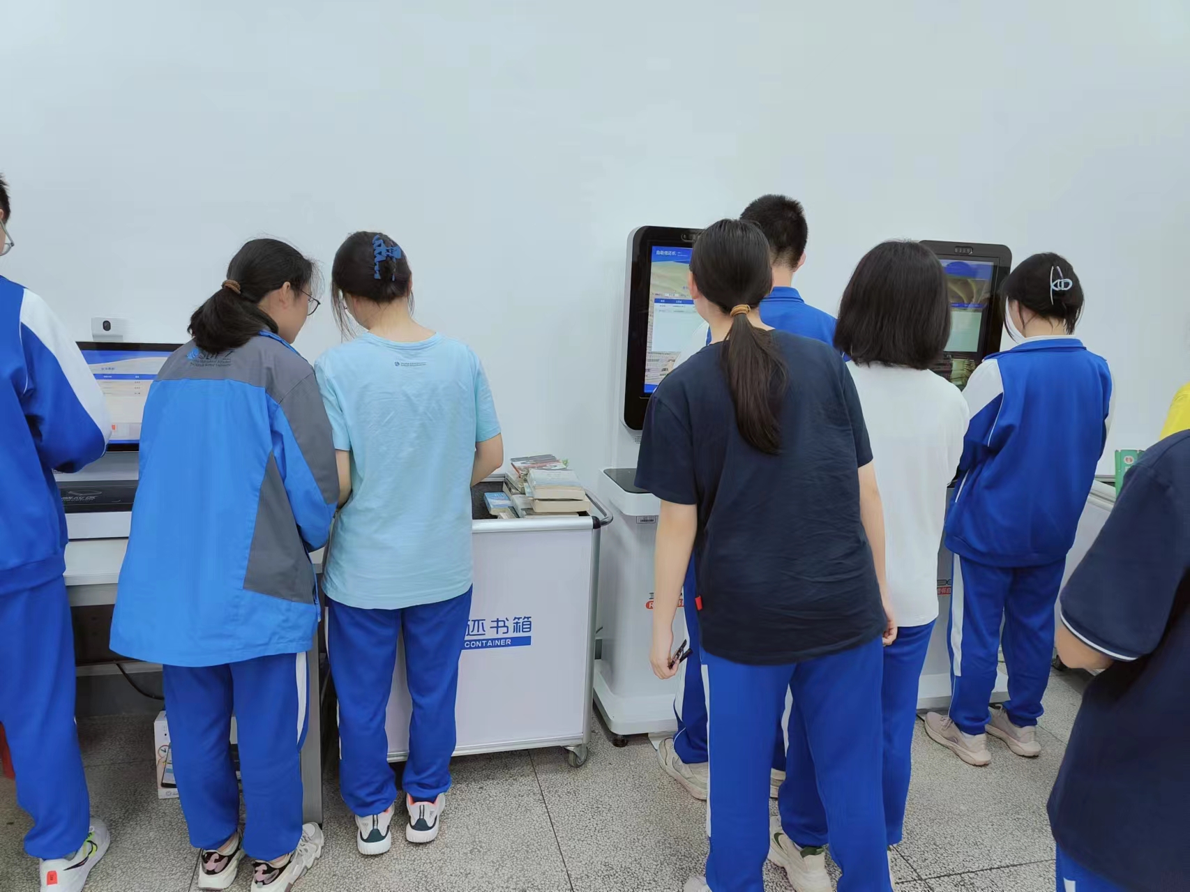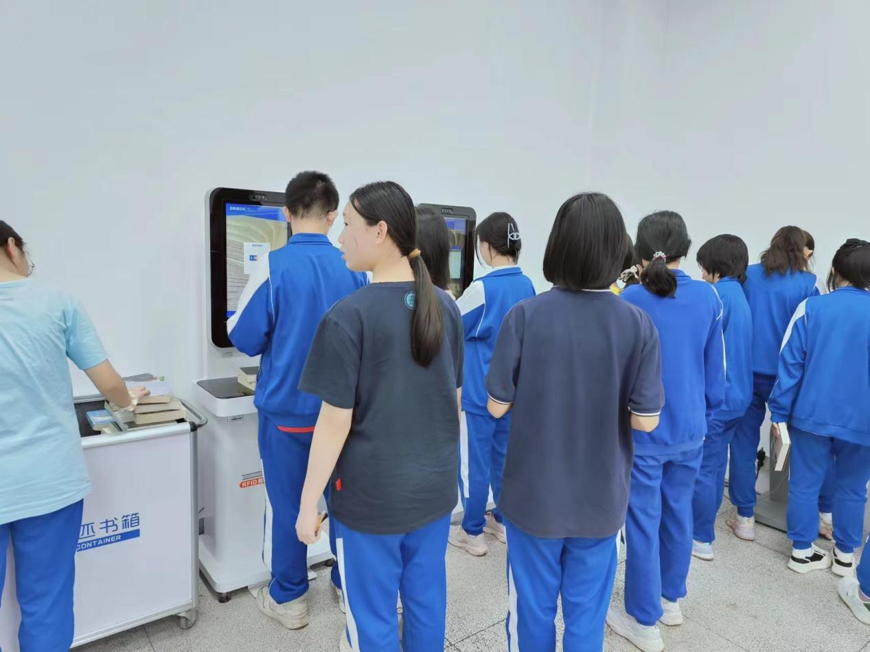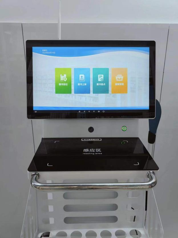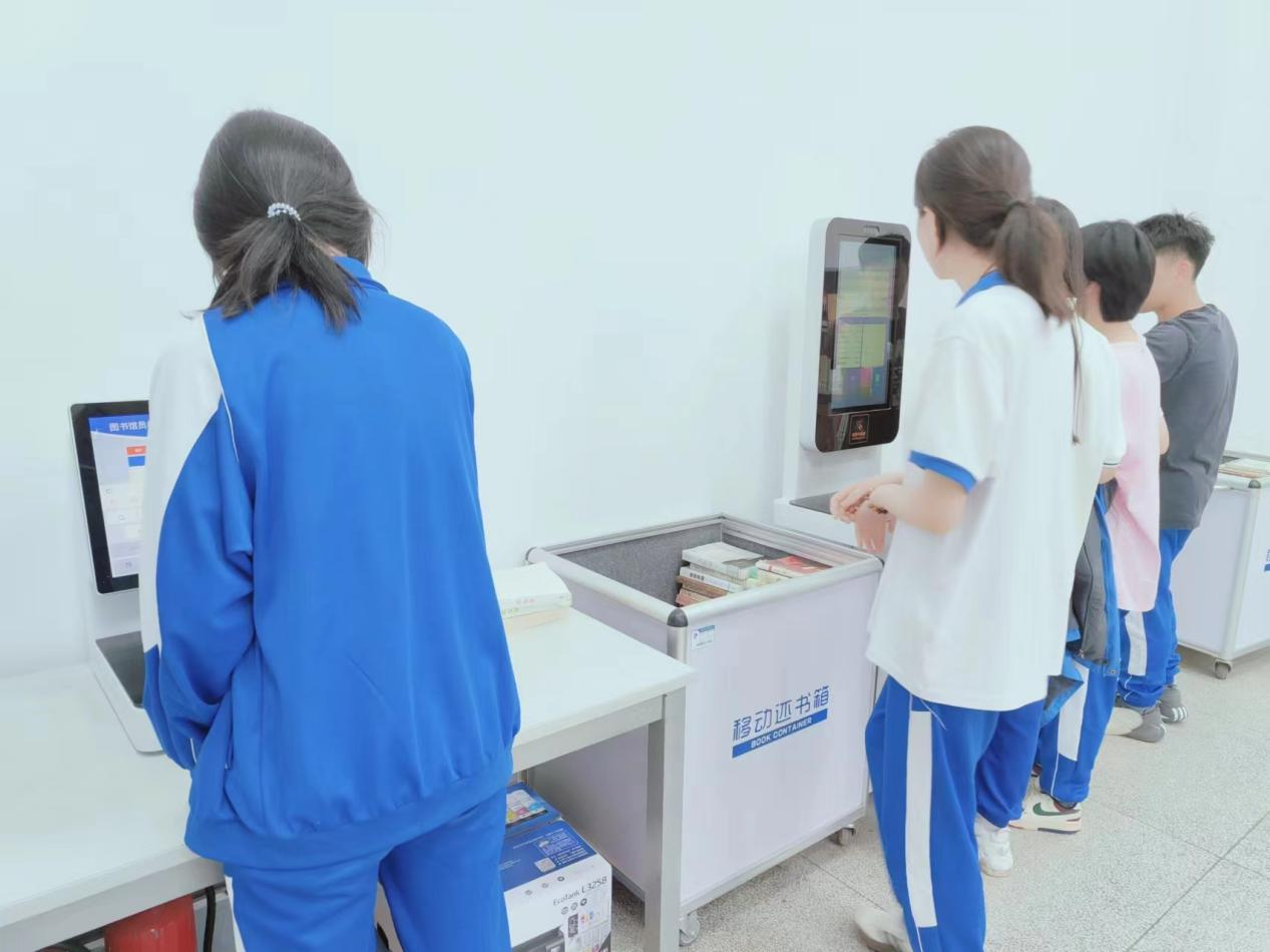 【增添两项借还智能设备】外借室新增自主图书杀菌机,图书出库入库皆可经由简单操作进行杀菌消毒,给学生的健康又添一道保障;书库新增图书盘点车,图书在库情况更加清晰明了,图书定位快速准确;三台图书自助借还机也进行了全面更新,系统运行更加流畅。