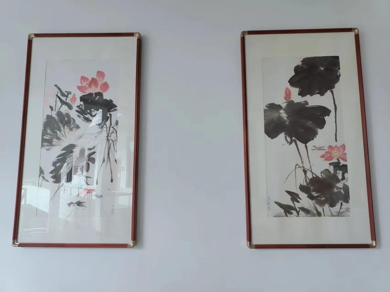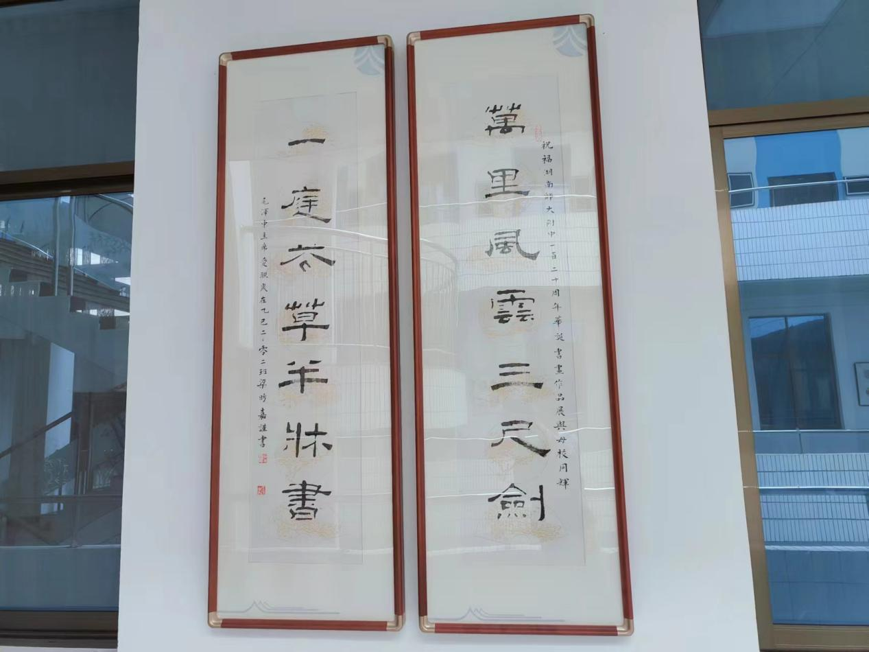 【多幅书画作品陈列馆内】之谟图书馆同校内美术组合作,增设多幅书画作品于图书馆内,馆内文化氛围愈加浓厚。