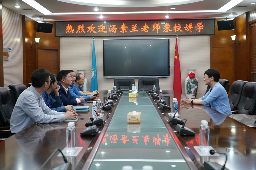 【读书月系列活动之“汤素兰文学讲座”】4月24日晚上,著名儿童文学作家汤素兰莅临我校进行文学讲座,科研与教师发展处主任刘进球、图书馆馆长郭在时、语文组教师代表、高一年级两百余名学生在现场参与活动。