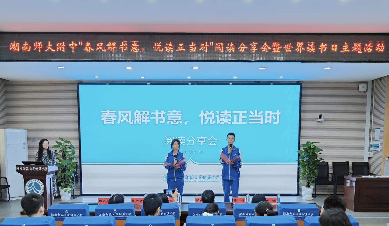 【读书月系列活动之“春风解书意,悦读正当时”阅读分享会活动】4月23日,图书馆与语文教研组联合面向全校学生开展“春风解书意,悦读正当时”主题阅读分享活动,活动由高2310班李婧语、高2322班彭俊生主持。