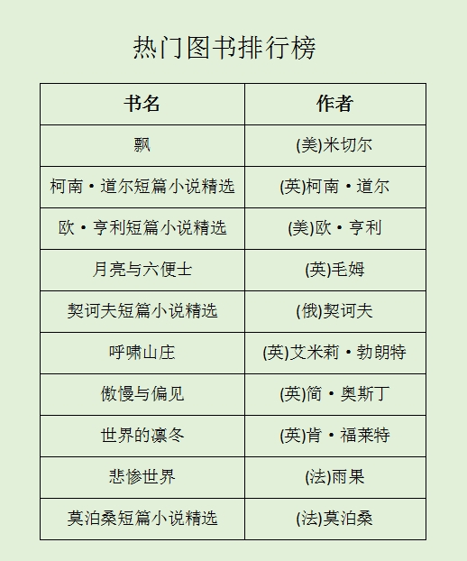 这一学年,世界著名文学作品《飘》成为附中学子最爱借阅的图书,其他经典名著也都纷纷上榜。咀嚼名著,深入思考,流传百年的作品自有其独到之处。