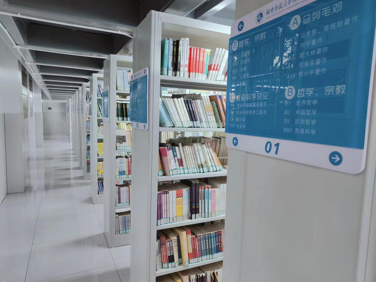 【服务师生借阅】之谟图书馆外借室假期进行装修升级:书库加固,承重能力大大提高,安全稳固;设备增加,自助图书杀菌机让借阅更健康,移动盘点车让图书在库情况更加一目了然。