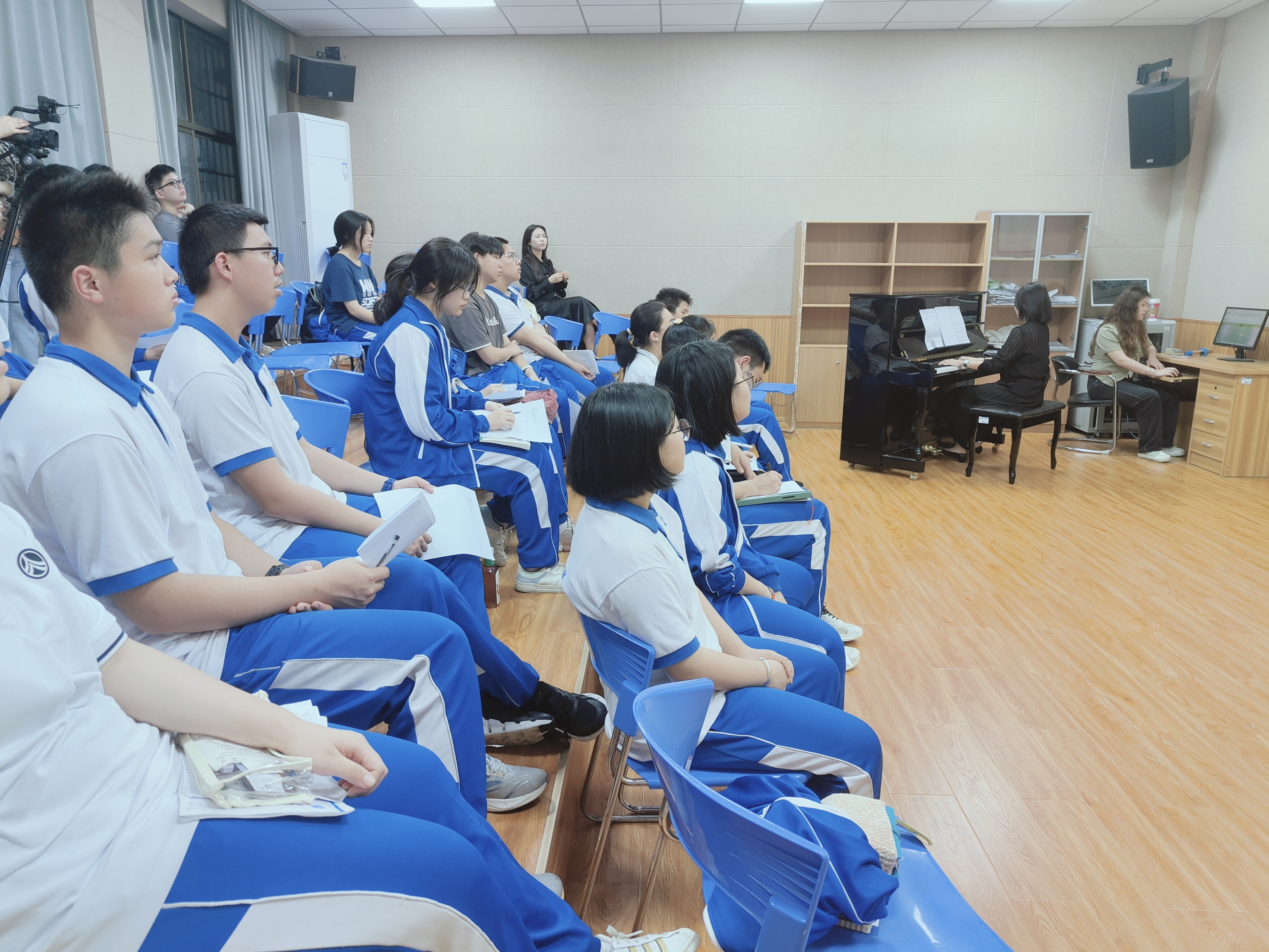 【读书月系列活动之“水语之旅”文化沙龙活动】4月29日,图书馆联合惟一书屋在艺术楼举办第三期文化沙龙活动。本期文化沙龙主题为“水语之旅”,活动由湖南师范大学音乐学院教授吴珊珊老师主持,白帆文学社、音乐社的同学们参与了本次活动。