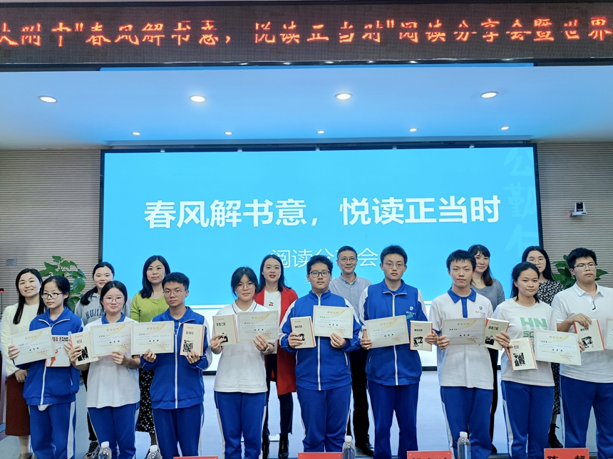 在本次阅读分享会上,荣获特等奖的九位同学作了阅读分享。黎宇宸同学的《行吟泽畔处,天地一沙鸥》,通过分享自己的阅读史,来寻找精神的自洽;韩睿翊宸同学通过分享《红楼梦》阅读的个性体验,获得独特的思考;汤雅童同学认为阅读能给予她专属富藏;谭瑞莹和大家分享了她眼中的《悲惨世界》;罗妮娅同学感叹于金庸先生笔下的浩然英雄气;刘宇涵同学在《瓦尔登湖》中邂逅自我,追逐自由;李琅杰同学认为苏东坡蕴藏着世间最细腻、最真挚的情思,切莫浮躁,珍惜当下,学会豁达;王梓桥同学在《愚公移山》中体悟到孰智孰愚,当辩证以待;陈程诚同学认为阅读能帮助我们不断地锐化思维,跳出历史周期律的束缚以打磨自身,应对时代的巨浪之击。