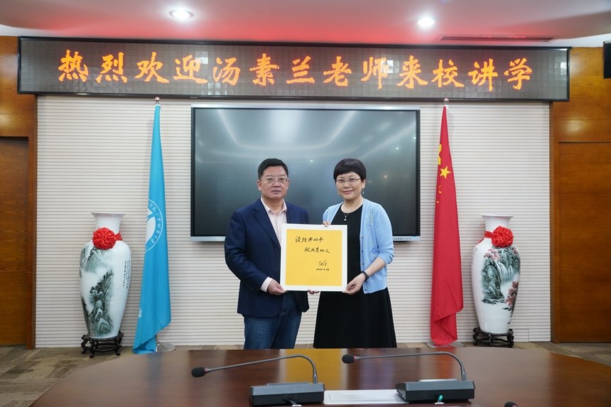 4月24日,全国政协委员、湖南省作家协会主席、著名儿童文学家、湖南师范大学教授汤素兰来我校讲学。