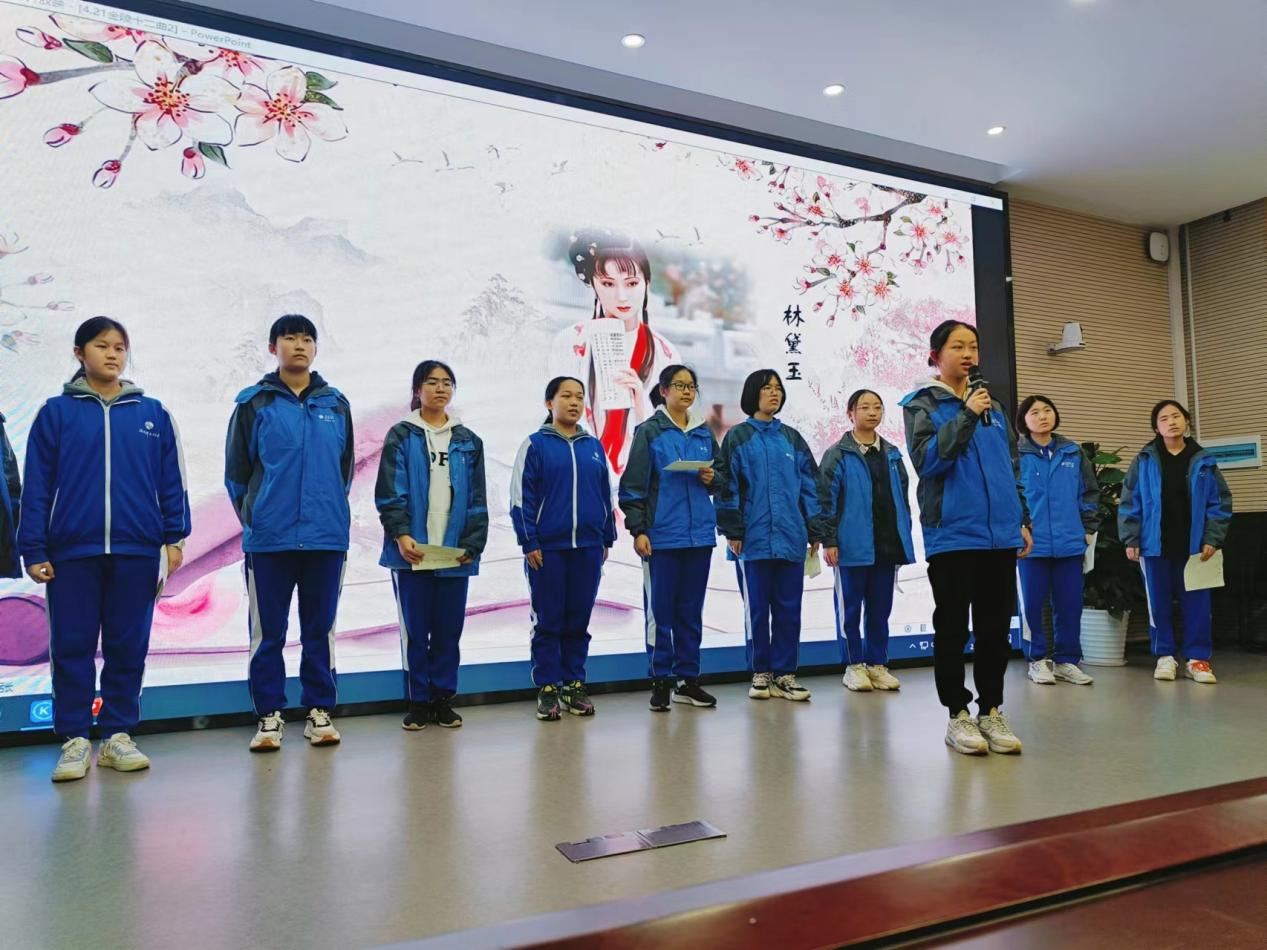 随后,语文组的两位实习老师杜静、邓敏各自从不同角度谈论了《红楼梦》经久不衰的美。在听完两位老师的分享之后,高2201、2202、2203三个班的12位女生诵读了《红楼梦》的经典片段,给现场的听众们带来了身临其境的体验。
