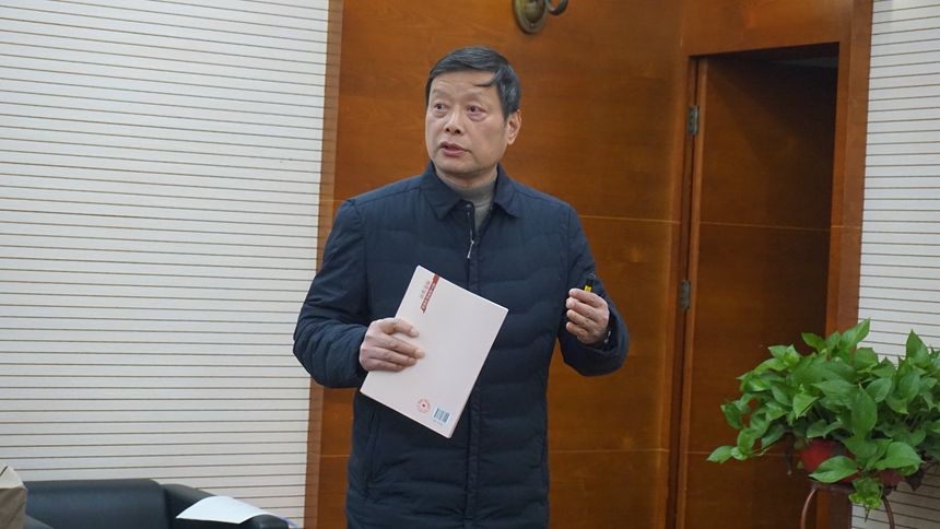 科研与教师发展处首席研究员杨帆作了编写方案解读。他指出,编写《基于新课程标准的课例研究》旨在打造一部打动同行的“真经”,组织教师走出原初型教学经验,走向反思型教学经验和原创性教学经验,从而创新实践性教学理论。他对编写过程中要重点突出的单元教学设计、三导四学呈现、分层分类落实、评价改革体现等作了强调,还对丛书的应用推广作了规划。