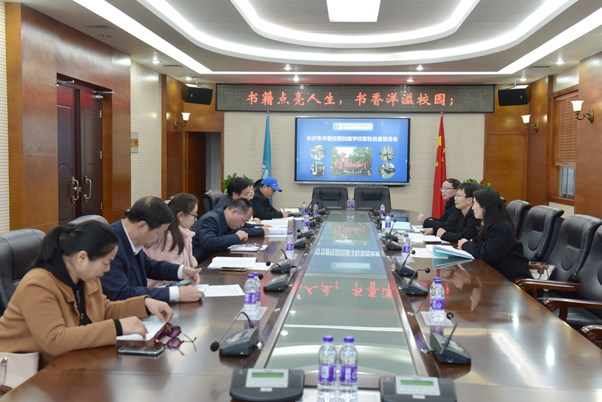 12月23日上午,长沙市“书香校园”创建学校复核第二检查组前来我校开展现场检查,校长谢永红、纪检书记李春莲及相关部门负责人、之谟图书馆全体工作人员参与迎检工作。