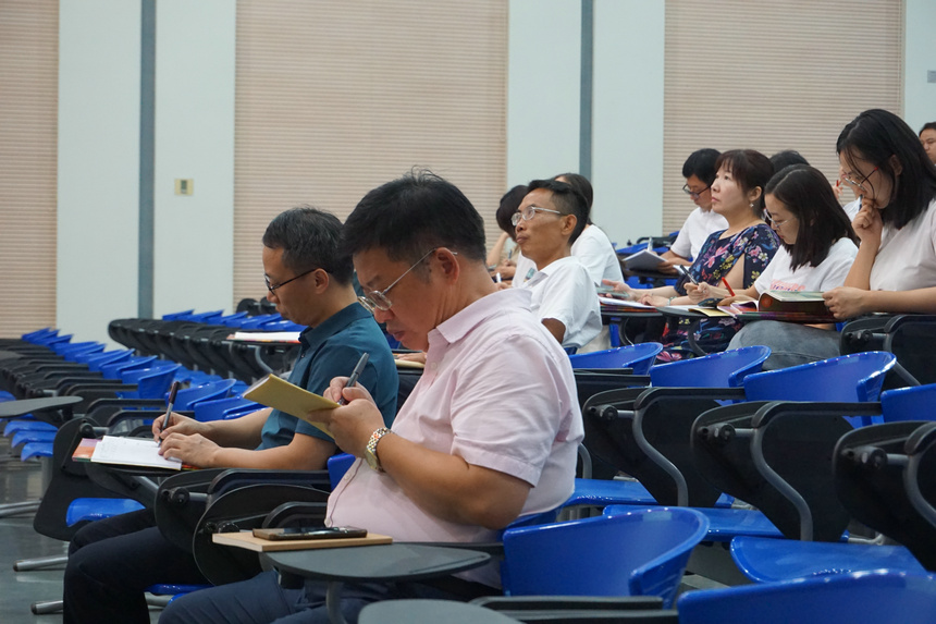 为加强新课标、新教材的研究,更好地发挥思政课作为立德树人关键课程的重要作用,9月2日下午,湖南师大附中政治教研组在学校会议厅举办教育集团联合教研活动。党委书记黄月初出席活动,来自湖南师大附中、湖南广益实验中学、湖南师大附中梅溪湖中学、湖南师大附中博才实验中学以及湖南师大附属思沁中学、湖南师大附属颐华学校的60多名政治教师参加了活动。活动由师大附中政治教研组组长蒋平波老师主持。
