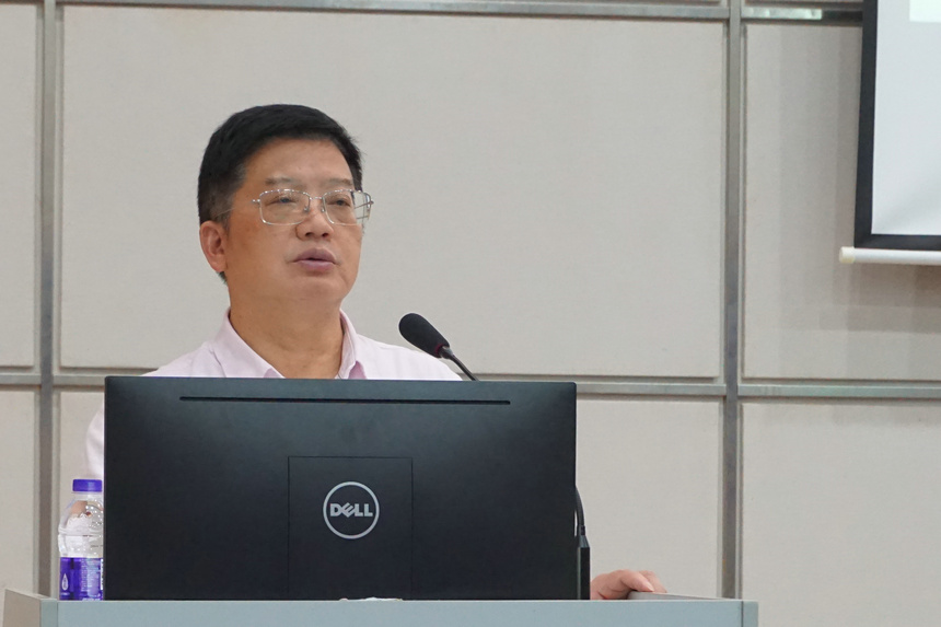 湖南师大附中学术委员、资深政治教师黄治清分享了他对高中政治新教材的认识理解与研究成果。他从如何读懂新教材、如何处理新教材、如何用好新教材等三个维度出发,深入剖析了必修一《中国特色社会主义》的教材理论逻辑和知识框架。他的报告逻辑严谨、思路清晰、内容详实、有点有面,对新教材教学具有很强的指导性,与会教师听得津津有味,学得扎扎实实,纷纷表示受益匪浅。